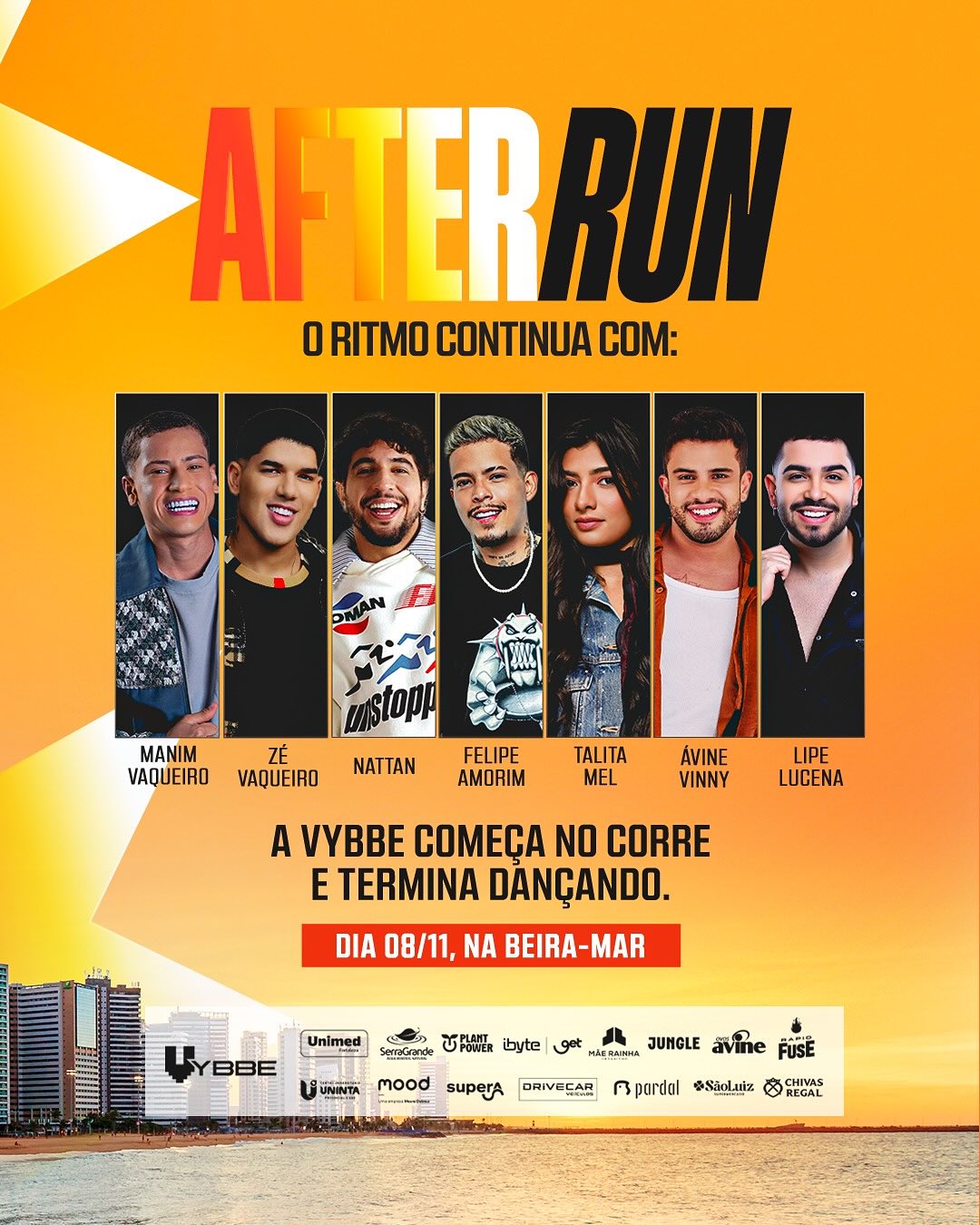 Após a prova, o público será presenteado com um show no formato colaborativo exclusivo que reunirá grandes nomes da Vybbe. No palco do pós-corrida, participações de Nattan, Zé Vaqueiro, Felipe Amorim, Ávine Vinny, Manin Vaqueiro, Lipe Lucena e Talita Mel, que prometem transformar o pôr do sol fortalezense em um grande festival. Vale destacar que as performances serão participações especiais, e não shows completos
